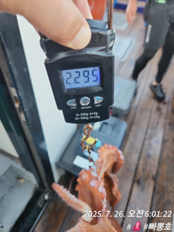 안녕하세요!!!7월 10일 목요일 조황입니다.요즘 전국 곳곳이 무더위로 다들 힘들다고 하던데요강릉은 낚시 하기에 좋은 날씨가 이어지고 있습니다.오늘 13분 모시고 다녀왔구요ㅇㅕ전히 방생사이즈가 올라오고 있고오늘은 무슨 이유인지는 모르겠으나 사천 전체적으로문어 보기가 힘든 하루였습니다.빠뽕호는 방생제외 19수 하고 입항했습니다.오늘도 빠뽕호를 찾아주신 조사님들께 진심으로 감사드리며언제나 최선을 다하겠습니다!!! *** 강릉 빠뽕호 예약 안내 ***예약문의 : 010-2127-0378오시는길 : 강원도 강릉시 사천면 진리해변길 68-11 (정박지)홈페이지 : https://ppappongho.sunsang24.com/